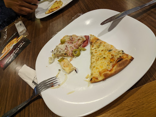The all you can eat option here is really worth the value, as with any all you can eat option, you must measure yourself to get the most of it, it's better to have many small portions served, than few big portions. The pizza served here is thin crusted, so you won't get full out of it. They have quite a few toppings, both salty and sweet, and they will also provide some meats, pasta and side dishes. I only have been here once, but they had many mistakes on our bill, charging more than 200 Reales extra. Only we were about to leave, we realized about it, they corrected the mistake with the help of a very nice and kind waiter that happened to speak Spanish, he really earned his tip even before this incident. Other than that, the overall experience was excellent, no starts deducted since they corrected...