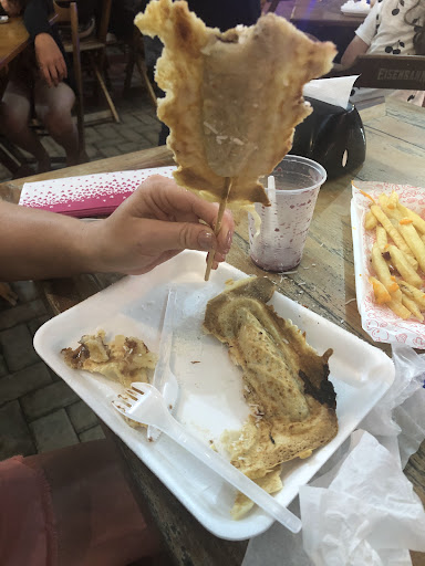 Comemos hambúrguer e pizza também. Tudo servido em plástico e o atendimento muito ruim.