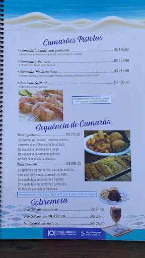 Read moreÓtima opção de restaurante de frente para a praia e com mesas na varanda. Localizado um pouco mais perto da parte norte da praia, oferece estacionamento com manobrista (serviço que não é comum na maioria dos que ficam na frente da praia e essencial para quem está de carro, já que estacionar está cada dia mais difícil) e não cobram pelo estacionamento!! Podemos parar na frente do restaurante que o manobrista leva o seu carro. Ambiente agradável com música ao vivo (cobram cover) e com várias opções de pratos. Optamos pelo Camarão a moda da Casa (R$219) que serviu bem um casal com filho (11 anos) e na nossa opinião era o prato que mais nos chamou atenção. Ele tem uma apresentação muito bonita e os camarões pistola são deliciosos!! Demorou um pouco para chegar mas valeu a pena! Tudo fresquinho e até as frutas estavam muito doces. Prato que impressiona e agrada quem vem de fora. O resto não se diferencia muito os outros restaurantes da região. Os preços não são baixos, porém é o praticado durante a temporada na maioria dos restaurantes. Vale a...