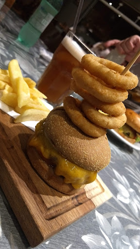 Opções: sanduíches com hambúrgueres artesanais (inclui vegetariano), pratos e porções, frutos do mar, sobremesas (pequena seleção), cervejas e chope, sucos naturais e industriais. Mesas dentro e fora do local. Boa decoração e capricho na higiene. Dois televisores com programação (sem áudio): futebol americano/programas infantis. Música ambiente puxando pro rock e nostalgia anos 80/90.