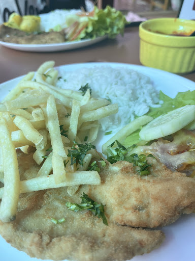 Read moreFomos no dia 27.07, quarta-feira. O simpático do Emerson nos abordou logo que saímos do estacionamento de frente ao restaurante, nos mostrou o cardápio e disse que almoçando com eles, o estacionamento fica por cortesia assim como uma sobremesa, achamos interessante e então pedimos pratos executivos, peguei o frango a milanesa (R$35,90), acredito que faltou tempero na comida, a milanesa se tivesse mais sal seria melhor, a batata frita estava meio murcha, sem graça, e parecia que com gosto de outra alimento que foi frito no mesmo óleo. A sobremesa estava ok, uma banana com calda de sorvete de morango e uma bola de sorvete de creme. Um detalhe desagradável foi um cheiro ruim que não identificamos ao certo da onde vinha e fez com que fossemos embora...
