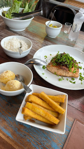 Gostei muito da experiência, o pé direito é alto o que concede uma sensação de amplitude, a construção é voltada para o rústico mas muito bem acabado. Os pratos, bom, os acompanhamentos são ótimos e na medida certa e as carnes são deliciosas, bem temperadas e servem muito bem, só atenção quanto ao ponto pois pedi um bife de chouriço um ponto abaixo e veio três pontos abaixo mas estava tudo tão gostoso que nem pedi pra devolver a grelha mais um pouco. O atendimento é cordial e rápido, excelente equipe. O preço condiz com o que é vendido, almoçamos em quatro no dia dos pais e o prato que escolhemos seguindo a indicação do colaborador que nos atendeu custou 350,00 e saímos extremamente satisfeitos com...