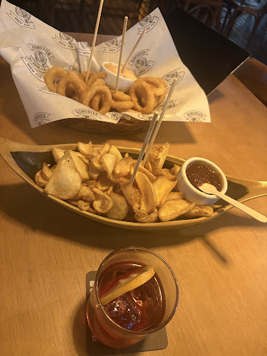 Read moreFomos ao bar por indicação de um amigo e também da pousada onde estávamos, porém, a experiência não foi das melhores! preço elevadíssimo pelo o que é servido. Pedimos uma porção de picanha e uma de batata com queijo e bacon; resumidamente a picanha não era picanha… a porção de batata não tiveram o cuidado de desfiar o queijo e cortar o bacon de forma a harmonizar melhor na degustação… difícil de comer! principalmente ao ser servido com palitos de churrasco. Não se importaram em saber o motivo de não pagarmos os 10% já que todos os pedidos são feitos via tablet e ainda sim os garçons não dão a mínima atenção… ficamos com os pratos das porções na mesa após finalizadas por mais de 20min, gerando incômodo… Atendimento inicial (fila de espera) bom! Comida sem sabor, música ok, atendimento mesa ruim!...