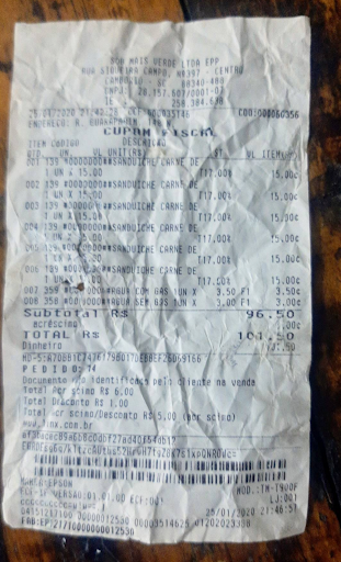 Péssima experiência, pois fiz um pedido no restaurante de 05 sanduíches, sendo que 04 deles vieram errado, mas não termina por aí, na nota fiscal tem a cobrança de 06 sanduíches 01 com gás e 01 sem gás. Liguei para o restaurante, porém sem sucesso, insisti por algum tempo mas continuo sem satisfação do responsável.. Estou imensamente insatisfeito :(