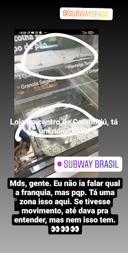 Read moreTô dando 1 estrela pq não posso dar menos. Péssimo atendimento e lugar sujo. Não tinha itens q acompanhava meu lanche em loja, não me avisar, só fui informada quando questionei. Pães velhos e murchos. Linha suja e bagunçada. Muita falta de higiene, em plena pandemia, vidro da linha sujo de marcas de dedo e mesas sujas mesmo sem cliente em loja. Vários funcionários e nenhum se atentou a passar álcool e higienizar salão. Enfim, uma nojeira. Vou anexar fotos da linha no momento q fui, detalhe, NÃO HAVIA MOVIMENTO, dava tempo de...
