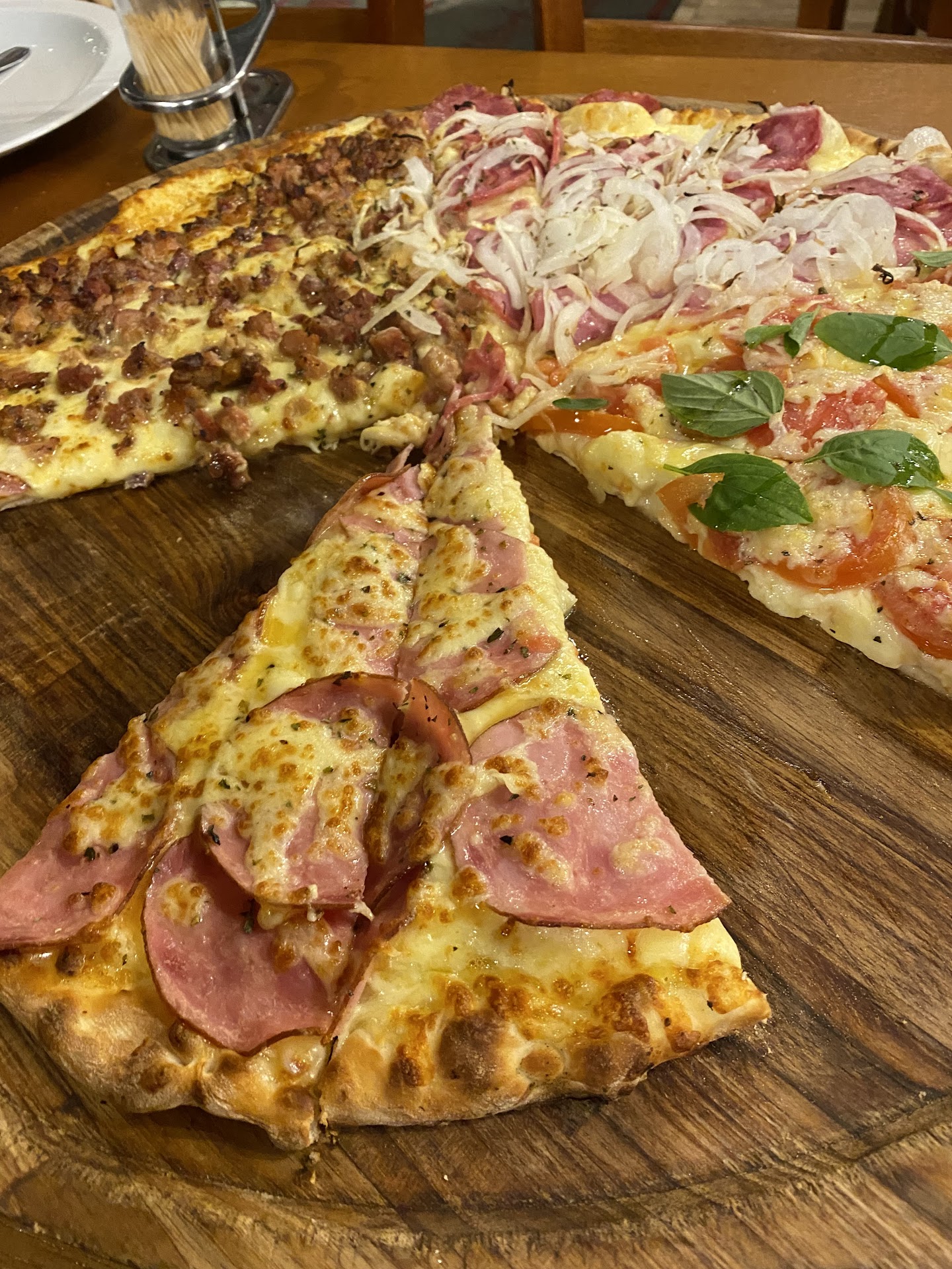 A pizza estava tão saborosa que era impossível resistir a mais uma fatia. O equilíbrio entre os ingredientes tornava cada pedaço ainda mais especial, com sabores que se complementavam harmoniosamente. Fiquei impressionado com a qualidade dos ingredientes e o cuidado na preparação, que resultaram em uma pizza deliciosa.