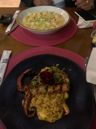 A comida então… Céus! O polvo com risoto de camarão foi um dos pratos mais saborosos que já provei na vida. Textura perfeita, sabor rico e equilibrado, uma obra-prima! As entradas também encantam — todas bem elaboradas, caprichadas e deliciosas.