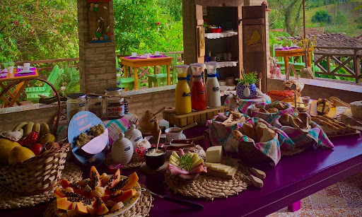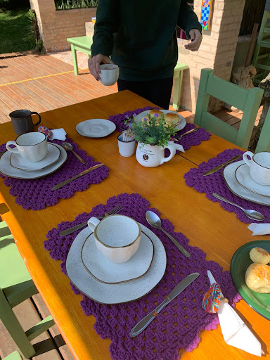 Read moreA Elaine e o marido são muito caprichosos com o café da manhã que é servido no mesmo local onde na hora do almoço funciona o restaurante da Wilma. A experiência de tomar o dejejum aqui é um dos pontos altos de Gonçalves. Pão de queijo, Cafezinho, pães deliciosos, doce de leite, queijo goiabada e de vez em quando até uma canjica que até agora não comi melhor. Tudo isso em um jardim lindo cercado de bichos da fazenda que as crianças adoram. Muito difícil não visitarmos o Chiquita antes de pegar a estrada de volta para casa quando estamos em...