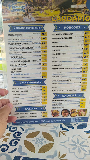 Sai de São Paulo para ir no pesqueiro arco íris para comemorar o dia das mães com minha filha que estuda e mora em Itajubá e me arrependi! O lugar é lindo mas a comida estava péssima, não houve planejamento para receber várias famílias- o que é óbvio que aconteceria no dia das mães. Esperava uma boa comida mineira mas não tinha nem um frango caipira, nenhuma carne de porco! Por falta de comida eu e minha família comemos arroz, batata frita e salada- que acabou também depois de um tempo. Por 73 reais o kilo esperava uma quantidade muito maior de opção de pratos. E por fim, para ajudar, fui arrumar sobremesa e o kilo também era 73 reais, onde já se viu 73 reais o kilo do arroz doce????. Deixei de ir em outros restaurantes que conheço na região para ir no pesqueiro e a experiência foi péssima, deixou...