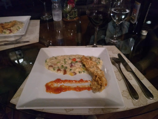 O restaurante fica logo na entrada do hotel Solar D'Araucária, no bairro do Retiro. Rústico e charmoso, com luzes baixas e lareiras espalhadas pelos salões, se mostrou um achado imperdível. Comemos uma porção dos melhores (e mais bem servidos) bolinhos de tapioca e de prato principal dividimos um peixe empanado com farinha de amêndoas acompanhando um risotto de pinhão com legumes - um prato memorável, muito bem temperado, com uma bela apresentação e sabores marcantes. Pedimos um vinho chileno excelente da extensa carta do restaurante. O preço é acima dos praticados na cidade, mas o ambiente, o atendimento e os pratos, com certeza, fazem valer MUITO à pena. 10 de 10.