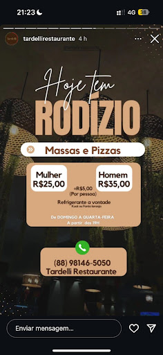 O Tardelli tem um buffet grande com bastante variedades, eu adoro a batata cozinha com temperos e uma "delícia" tem várias opções de acompanhamento o espaço não e total climatizado, tem ventilador também. Você pode se servir com o preço fixo ou no peso. O local não tem estacionamento, mas deixa em frente a praça que tem bastante local para estacionar. Ele funciona de noite com pizza, mas não experimentei...
