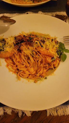 Read moreTivemos a oportunidade de conhecer esse restaurante. O ambiente é pequeno, com poucas mesas num sobrado. Pedimos dois menus executivos e um vinho tinto. A massa fresca é deliciosa e faz toda a diferença num restaurante italiano. Apesar das porções não serem grandes os ingredientes são abundantes. Pedi um talharine com camarões enormes e ricamente servido. O filé, apesar de bem macio, tinha um molho de gorgonzola um pouco denso demais para meu gosto. A harmonização com o vinho foi excelente. De sobremea, uma tortinha búlgara com uma bola de sorvete na medida. O banheiro, que fica na parte superior, poderia ser mais agradável, com torneira de metal ao invés de plástica e descarga acoplada ao vaso. Apesar de bem caro, especialmente para uma cidade do interior, vale a...