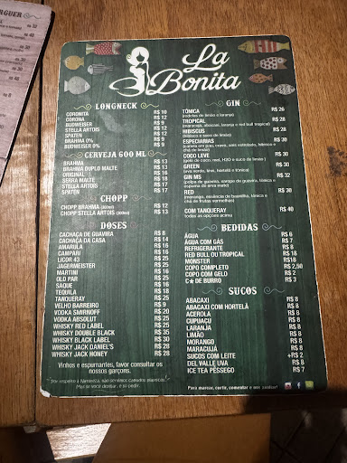 Bebidas e Comidas: Seja brindando com uma caipirinha artesanal ou saboreando petiscos locais, o La Bonita se destaca pela qualidade. Os ingredientes frescos e as receitas inovadoras garantem uma experiência gastronômica que agrada ao paladar mais exigente.