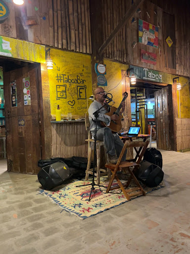 O Taboa Bar é um bar descontraído com música ao vivo, bebidas e petiscos. O bar está localizado na rua principal de Bonito, Mato Grosso do Sul.