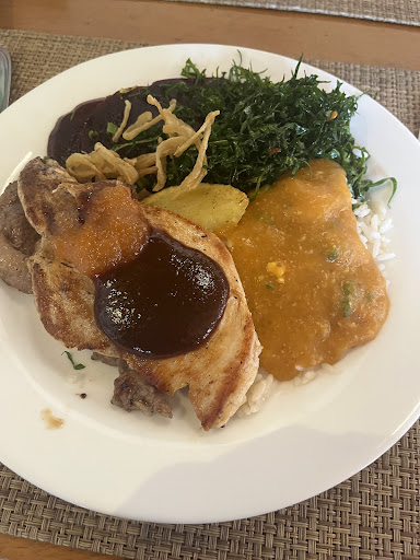 Este restaurante é, sem dúvida, um dos mais agradáveis da cidade. O ambiente é acolhedor e único, com uma música ambiente suave que torna a experiência ainda mais relaxante durante a refeição. A comida é saborosa e atende a diferentes paladares, e o atendimento é impecável, com funcionários atenciosos e eficientes. Embora a estrutura seja compacta, o local é super aconchegante, sempre limpo e bem organizado. É o lugar ideal para quem busca uma refeição tranquila, de qualidade e com um toque especial de hospitalidade. Certamente...
