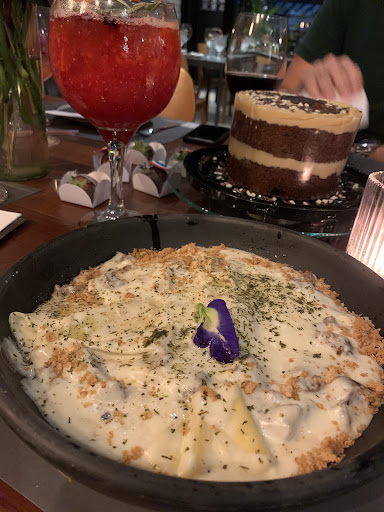 Read moreEscolhi o restaurante pelos comentários feitos aqui e a primeira impressão que tivemos foi de um ambiente agradável para um jantar a dois. Fomos muito bem recebidos, apesar de não termos feito reserva de mesa. Os garçons, muito prestativos e educados, não ficaram em nosso pé e nos deixaram a vontade para escolher nossos pratos. O cardápio, disposto em Qr code, trazia poucas opções de pratos (mas já sabíamos disso) e optamos como entrada uns bolinhos de costela, que estavam uma delícia. A partir criamos uma boa expectativa do que seriam os pratos principais. Eu, optei por risoto de camarão e minha esposa um risoto de limão siciliano, destacando que o ponto de sua carne deveria ser BEM PASSADO. O preparo dos pratos não demorou muito e logo chegaram com uma bela apresentação e ainda com a opção de mais parmesão, ralado na hora pelo garçom. O risoto de camarão se destacava apenas pelo gosto da pimenta, que apesar de gostar muito de pimenta, tornava o prato enjoativo, os camarões haviam passado um pouco do ponto, ficando emborrachados e pareciam que haviam sido colocados apenas para finalizar o risoto, visto que estavam sem sal e não agregavam gosto algum ao prato. O risoto de limão siciliano também estava sem sal (provei o da minha esposa) e a carne, que havia sido pedida BEM PASSADA, estava ao ponto, mas também sem sal e sem nenhum sabor marcante para desejar novamente a mesma experiência. Então, resumindo minha experiência, deveríamos ter ficado apenas com a entrada e...