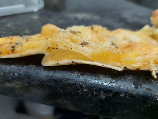 E tem mais. A pizza não estava bem assada. Quase crua. Acho que por causa da espessura da massa, eles são obrigados a dar menos tempo de forno na pizza.