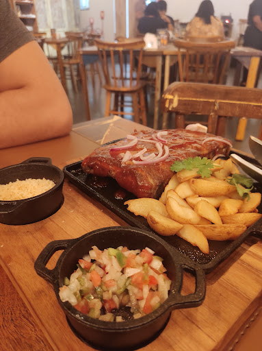 Read moreDemorei alguns meses para avaliar, mas vamos lá, fui la em setembro de 2023, as bebidas que foram as primeiras coisas que pedi estavam fantásticas, se fosse pra avaliar apenas isso eu daria as 5 estrelas sem nem pensar, mas continuando, pedi esse prato aí da foto, primeiramente as batatas estavam molengas, o arroz estava um pouco queimado, e a carne fria, dois pedaços da carne estavam extremamente borrachudos e passados do ponto, o terceiro pedaço estava ótimo, não faço ideia do porque o padrão não se repetiu, os legumes tbm estavam bem medíocres, isso é oq tenho para falar das comidas e bebidas que pedi, agora vamos ao atendimento, que foi outra decepção, o moço que estava atendendo, simplesmente passava reto toda HR (só tinha a minha mesa e mais outra), na outra mesa ele ficava quase o tempo todo conversando, comigo só foi simpático na hora de pedir para marcar eles no Instagram, e eu ainda o fiz, antes de provar a comida, se eu tivesse provado antes nem teria postado, enfim, já na hora de pedir a conta fiquei esperando alguém olhar para chamar, mas o cara simplesmente encarou a gente, deixou o avental em uma mesa e foi embora, depois de +)- uns 30 min eu fui chamar atenção de um BARMAN, ele que avisou pra o outro garçom que só ficava no celular, enfim paguei Extremamente caro, para um atendimento e comidas péssimos, nunca mais vou lá, estragou completamente a minha noite essa experiência aí, única coisa que se salva são as bebidas, deveria virar apenas...