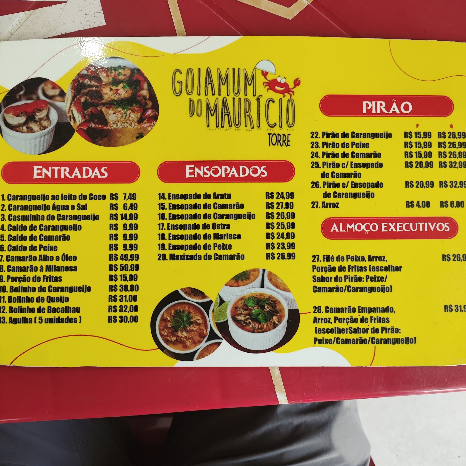 1 - Não tinha goiamum, pedimos caranguejo; 2 - Depois de 20 minutos, informaram que não tinha mais caranguejo; 3 - Pedimos ensopados a 18 reais. Veio um de camarão que, na verdade, era de caranguejo. Amargava muito, como se tivessem usado a água que cozinharam o caranguejo e acrescentado alguns poucos pedaços da carne de caranguejo, cheio de casquinha dura; 4 - Quando enfim veio o ensopado de camarão, veio frio, quase gelado; 5 - O ensopado de polvo demorou uns 40 minutos e tava salgado; 6 - Os garçons saiam da mesa antes de pegar o pedido de todos, eu tinha de ficar chamando pra eles voltarem e fazerem o meu; 7 - Saímos de lá e fomos almoçar em...