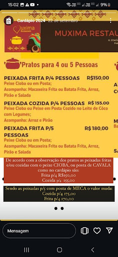 Read moreExcelente restaurante, garcons e equipe de apoio, todos prestativos e atenciosos, ambiente acongegante, cama elástica para crianças, espaços verdes, ducha para banho, som ao vivo, estacionamento com sombra, localização boa, próximo a Praia do Seixas, deixamos carro estacionado lá e fomos curtir a praia, comida muito boa, pedimos um peixe inteiro assado e uma mucheca, estavamos em 6 adultos, comemos muito bem, todos pratos tem com acompanhamento, porções boas, sabor delicioso, muito capricho...