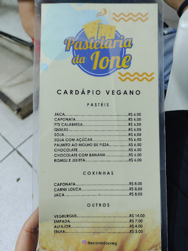 Read moreEu e minha família frequentamos a pastelaria da Ione há mais de 10 anos. Acompanhamos a evolução dela desde o 1º endereço (já está no 3º). Tanto a qualidade como o sabor do pastel só fazem melhorar. É, sem sombra de dúvida, o melhor pastel da cidade! O local é simples e bem arejado. Os pastéis têm um tamanho grande, com recheios fartos e variados. Além disso, você pode fazer a mistura que desejar, bastando informar a atendente a sua escolha. Meu preferido, o pastel de sabor Cartola, é maravilhoso! Com farto recheio de banana, chega bem servido, coberto de açúcar e canela, super crocante. Há, também, opções veganas muito gostosas. Tem Delivery, mas nada se compara a crocância do pastel feito e saboreado na...