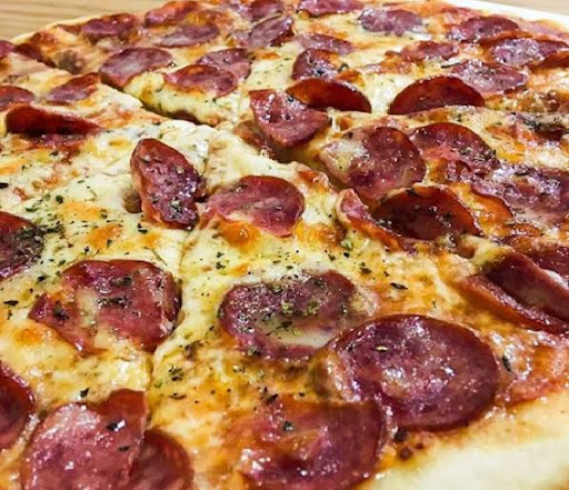 Pizza rápida, feita na hora, com higiene e ingredientes frescos.