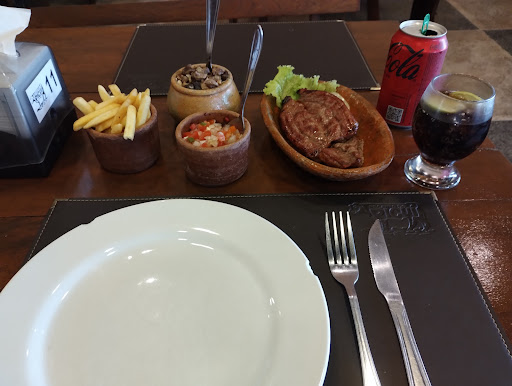 Read moreAmbiente amplo e climatizado. Atendimento muito bom, eles possuem uma equipe grande. Fui em um horário que não tinha tanta gente e foi tudo muito rápido, desde atendimento até a comida chegar na mesa. Pedimos para petiscar uma porção de pastel de carne de sol (que não é muito recheado, mas é bem gostoso e vem com um molhinho) e um trio de linguiças (que veio rápido e no ponto perfeito) e depois meio filé de sol com porção extra de pirão de queijo e macaxeira frita. Eles tem um molho de pimenta da casa que meu namorado que é fã de pimenta achou perfeito, eles vendem a unidade. Tudo estava muito gostoso, fiquei com muita vontade de voltar para pedir com a paçoca de carne de sol que só não pedimos por achar que a refeição ia ficar muito seca. Minha única questão foi a macaxeira que parecia que não estava frita, tava mais pra cozida e selada rapidamente na frigideira. Os valores são bons para o que...