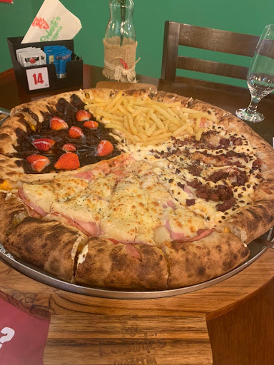 Read moreGosto muito da pizzaria, massa é gostosa, da pra perceber que os ingredientes tem qualidade, porém acho que deixam à desejar um pouco no rodízio, a pizza de chocolate com morango vem uma fatia de morango apenas. A pizza de lombinho com abacaxi nem abacaxi tinha. E os pedaços não são pequenos. Acho que miséria de ingredientes não combina com o valor que eles cobram. Pra duas pessoas foi 250 o rodízio...