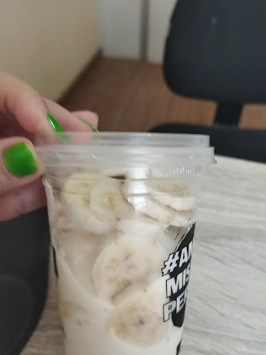 No final de modo brusco e mais uma vez sem educação a mesma moça jogou os copos com os nossos açaís sobre o balcão.