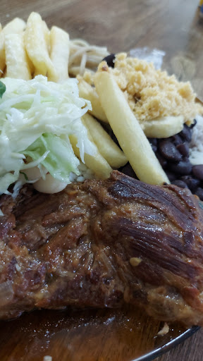 Read moreFui hje neste estabelecimento pedi um prato feito a senhora colocou uma carcaça de frango caipira questionei ela ela disse q era sobrecoxa, e nao era trouxe um micro pedaço de frango pra tentar amenizar o problema. Que vergonha um estabelecimento desse cheio de placas. " 2 pedaços"...."multa" o buffet eh cheio de avisos uma vergonha senão tem condições de atender bem fechem as portas...