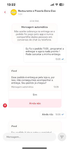 Read moreSimplesmente cancelamos o pedido, pois, no aplicativo o pedido havia saído pra entrega às 13:00, pedimos às 12:32, o motoboy chegou em nossa casa às 13:40 (moramos há 7 min de carro do restaurante) ao questionar o motoboy, o mesmo informou que o pedido havia acabado de ser pego, o questionamento que fica é: porque não atualiza no aplicativo o horário EXATO QUE SAI DO RESTAURANTE? Porque mentir que saiu às 13:00 se saiu às 13:30? Ligamos para o restaurante para questionar a demora entre o saiu para entrega e o prazo até nossa casa, mas sem sucesso e no aplicativo mandamos mensagens, sem respostas. Prestem mais atenção às entregas, pois isso é ruim para o restaurante (que a comida não é ruim) e o cliente. Não ficamos com o pedido após o cancelamento, o motoboy levou para devolução ao...