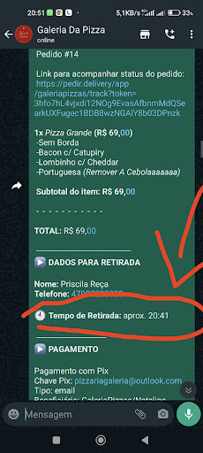 Read moreRealizei um pedido recentemente, o pedido chegou rápido, a qualidade do alimento é boa. Porém uma situação muito chata me fez desistir dos próximo pedidos por conta do pós venda. Realizei um pedido de um sabor especial, inclusive por desejo de uma criança que gostava mto, e notei que faltou ingrediente, justamente no sabor especial. Já era fim do expediente da pizzaria, enviei a foto informando, a atendente se desculpou, informando que compensaria no próximo pedido. Agradeci e entendo que já estava tarde para corrigir o acontecido, pedi que fosse feito o reembolso do valor. Fui informada de que seria repassado ao responsável e até o momento. Não recebi mais retorno. Embora seja simbólico, não é pelo pequeno valor, porém l foi pago a mais por isso, se eu não pagasse não poderia pedir, entendo que isso é falta de comprometimento. Eu me comprometi a pagar a mais, além de não vir como deveria, não tive mais retorno da outra parte...