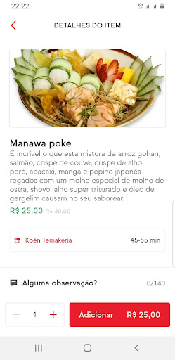 Já havia pedido em casa e estava ótimo, bem diferente do que foi apresentado no local. No poke faltaram os pepinos, faltou o alho poró, mal tinha um pedaço de manga, o salmão estava mal cortado e nem sinal daquele molho gostoso e do gergelim. Sem falar q a moça do caixa avisou q demoraria 15min e demorou quase 50min. Precisa colocar um display para as pessoas saberem quando está pronto e poder buscar. Bem diferente da foto do menu, da foto do ifood e da qualidade do Niu Sushi que estamos acostumados. Fiquei muito desapontado com oque...