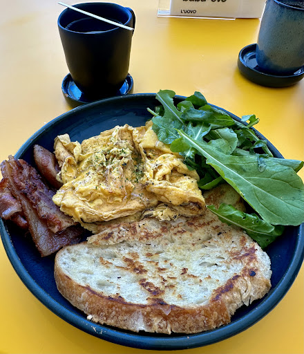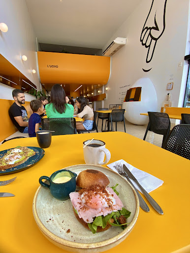 Read moreRead moreAmbiente super agradável e moderno. Os pedidos e pagamentos são feitos por um tablet gigante, intuitivo e simples, com detalhes e fotos dos pratos. O cardápio é bem variado, sendo obviamente o ovo, o principal ingrediente. Os pratos são enormes, muito bem servidos. Pedimos um “Toast alla Guaca” Pão de fermentação natural, guacamole, ovo pochet e granola salgada e um “O clássico ovo e bacon” Ovos mexidos, bacon e rúcula. Acompanha pão de fermentação natural. Se você não gostar de gema mole é só sinalizar. E para finalizar, “Panquecas L'uovo” Panqueca servida com manteiga, morangos, chantilly e mel. O atendimento é excelente! Tudo ótimo!!! Voltarei em...