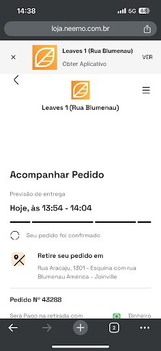Read moreEstá deixando a desejar faz tempo! Sou cliente desde sempre e a algum tempo toda vez que vou ao Leaves me estresso, ou o pedido vem errado, ou chego no estabelecimento que diz que fica aberto até às 22, mas as 21:40 já está fechado, sempre com a mesma desculpa de que “tivemos um problema na cozinha por isso fechamos mais cedo”... ou até mesmo tentando pedir por telefone antecipadamente para retirar no local, e o atendente não aceitar, dizendo que esse tipo de pedido só pode ser feito pelo site selecionando “retirar no local”, porém quando vou no site não existe esta opção! Enfim, uma pena realmente esse descaso com o cliente! Hoje foi minha última tentativa e mais uma vez me decepcionei, portanto não pretendo voltar a...