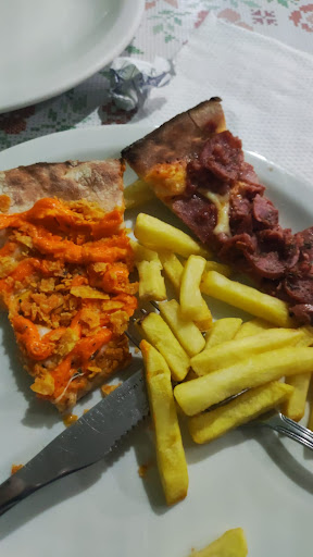 Read moreA pizza é 6/10, algumas muito boas e outras muito ruins (diria que até estranhas). Quanto ao atendimento, alguns garçons são bons e outros mantém uma péssima expressão de poucos amigos, tornando a experiência bastante negativa. O ponto principal aqui é: ontem, após comer nesta pizzaria, senti muitas dores estomacais e passei mal a noite inteira. Hoje, ganhei atestado médico por estar com intoxicação alimentar. Tinha algo de errado na comida, ao ponto de fazer muito mal. Paguei caro na pizzaria e ainda paguei com a minha...
