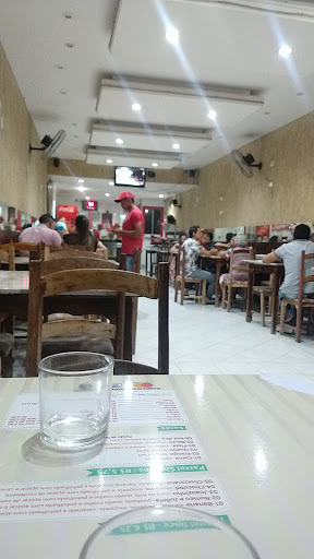 Prédio parece ser antigo, mas em bom estado; Precisa de uma atenção no teto e nos vidros estão feios e chamativos; É bem arejado e possui TV para quem quiser acompanhar alguma programação; As mesas são altas e fixas, mas bem tranquila para comer de boa; Não cheguei a ir ao banheiro, então não tenho como falar disso; Cardápio adesivado na mesa e bem amplo; Não tem espaço para crianças nem cadeirões;