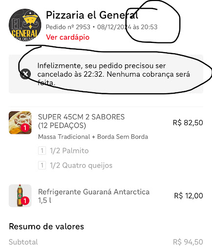 Read morePedido sempre atrasa muito, fiquei quase 1 ano sem pedir por causa do atraso que teve no meu pedido de quase 2 horas. Voltei a pedir pra ver se tinha melhorado mas aqui estou com meu pedido atrasado quase 1 hora, tentamos ligar e o telefone só dá ocupado, nem...