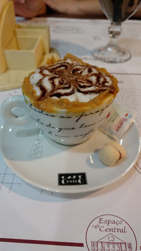Really good lattes, I had the doce de leite capuchinho and my finacee iced Ovalmalchina. Both were very tasty. We really enjoyed the pão de queijo with ricotta, passas e batata palha. I also have to say that compared to other cafes in the area Espaço Café is...