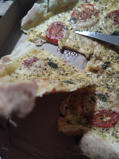 Read moreUma pizza ridiculamente fina, tão inacreditavelmente delicada que mal sustenta alguns pedaços de tomate jogados por cima. Ao tentar cortar, a faca atinge a própria caixa de papelão. A textura? Totalmente quebradiça e seca. Dei apenas uma mordida e agora estou sofrendo com uma...