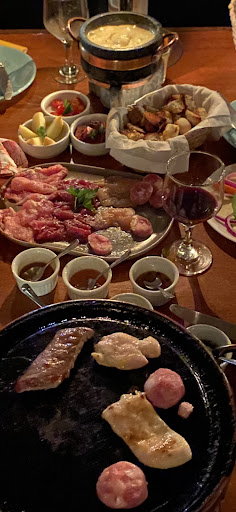 Reservamos pelo WhatsApp e pagamos sinal conforme foi informado. Ambiente bonito, aconchegante e agradável. Ao chegar fomos recebidos por uma garçonete que nos direcionou até a mesa. Ficamos alguns minutos à espera pra poder ser atendidos, pedimos bebidas e tb um vinho ao qual constava no cardápio e depois de um tempo fomos informado que não tinha. Ok. Ao pedir Fondue reservado uma demora sem fim..ambiente é pequeno e 02 pessoas apenas pra atender td demanda…não existe recepcionista e hora e outra um casal entrava sentava e era convidado a sair, pois aquela mesa, estaria reservada; chato isso … escolhemos o Fondue carne +frutas apenas e nos foi oferecido c uma certa insistência o de queijo, não aceitamos… pq já achamos o preço bem elevado pela oferta, a reposição dos itens apenas dos molhinhos que acompanha…o fondue de frutas é bem pouquinho com quantidade mínima de frutas a contar , digamos. O sabor / apresentação e temperatura estava bons, nada demais. Mas o que nos incomodou mesmo foi o atendimento, a demora e confusão pra servir, fazer pedidos, pagar e tb notamos um interesse e cordialidade com clientes mais próximos da casa ( família de um comandante ) era nítido o atendimento mais rápido, amistoso e mais comunicativo, alegre e gentil...