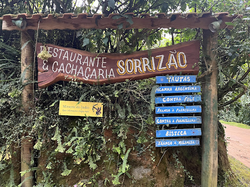 Chegamos num sábado, por volta das 14:00, estava vazio. Sou reticente em pedir pratos a base de contra filé, geralmente vem duro, seco, sem aquele marmoreio que dá maciez à carne mas resolvi arriscar e sorri! Muito bem servido, no ponto certo, acompanhado de um delicioso ovo, fritas crocantes, arroz, feijão e umas folhas de alface ( que nem faço questão!!!). Minha esposa optou por uma truta com molho de champignons, igualmente deliciosa e bem servida. O ambiente é bem rústico, com garrafas de cachaça tão velhas que nem dá para ler mais os rótulos. Oferece degustação das cachaças de fabricação própria, a de gengibre e de mel são divinas. Tem um pequeno estacionamento ao lado. O atendimento foi bem simpático e o custo surpreendeu de tão bom. Sem bobeirol de super indico, voltarei em breve, mais vezes, etc, etc...Valeu muito a...
