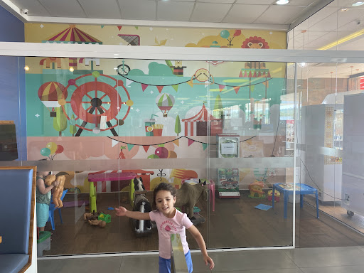Lugar conta com brinquedoteca. Ótimo para parar com crianças pequenas de até uns 5 a seis anos (que precisam mais de um espaço para se divertir enquanto espera o prato) preços relativamente equivalente ao espaço. Parto mais barato 35,00 reais. Tem buffet de salgados e doces.