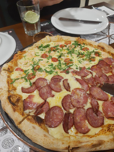 Pizza: uma pizza diferenciada, com massa de estilo italiana, bastante variedade de sabores, muito saborosas e suculentas!!!! Adoramos!