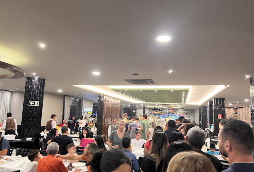 Um lugar para passar bons momentos com a família, um ambiente excelente onde você realmente se sente à vontade. Porém, uma gastronomia que deixa a desejar em alguns pontos. O sushi que experimentei estava seco, não tinha nem textura, nem sabor muito agradável. O camarão, esse já tinha uma textura muito palatável, porém tinha um tempero que roubava o sabor do camarão, mas não era nada exagerado. Em relação às carnes, comecei com um alcatra que estava sensacional, nota mil, muito macia e saborosa, depois experimentei uma fraldinha muito boa também. O que já não aconteceu com o contrafilé (infelizmente, é meu corte preferido) que estava duro, porém saboroso. A costela desossada não estava agradável, nem na textura, nem no sabor, precisam ajustar isso. Quase quando já estava indo embora, serviram uma picanha, essa sim, deliciosa, perfeita! Finalizamos a experiência com uma sobremesa, uma torta alemã que estava incrível, até trouxe alguns pedaços para casa. O atendimento parece ser bom, não posso dizer que foi ruim, pois tiveram dois ou três garçons que foram muito atenciosos, contudo fui em um dia no qual a casa estava muito cheia, então muitos quase nem tinham tempo de olhar para quem estavam servindo e alguns pedidos demoraram chegar. Mas a carne, não, toda hora tinha algum corte sendo oferecido. Tem um espaço muito bom para as crianças e uma cuidadora muito atenciosa. O estacionamento é gigante, muito bom, só que fica relativamente longe da entrada, então você terá que dar uma boa quantidade de passos para chegar até o carro, o que não é muito agradável de se fazer com a barriga cheia, dá até preguiça de ir buscar o carro... No geral, recomendo o lugar, principalmente se você for celebrar seu aniversário com a família e os amigos. Sem contar que o preço é muito justo, até barato, em relação a tudo que é oferecido. Se o seu objetivo é comer carne à vontade, esse lugar...