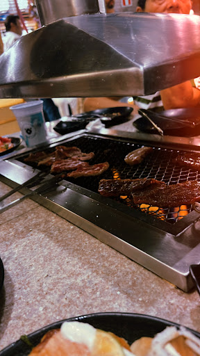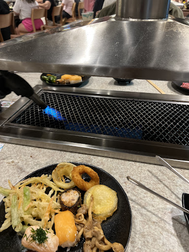 Read moreRelatando desde o início do local, como o lugar é novo pegamos uma fila de 1:30 chegando as 18:40 em uma terça-feira. Existe um sofazinho para 3 ou 4 lugares e só, o restante tem que esperar na calçada do lado de fora. Ao encaminhar para a mesa a atendente simplesmente foi embora e não explicou como que funciona nada, nem sobre a churrasqueira e como funciona o rodízio como se todos já soubessem como que é. Um detalhe que incomoda na mesa é a caixa que fica embaixo da churrasqueira que ocupa espaço e prejudica bastante quem senta no meio da mesa, ainda mais se tiver pernas grandes. Na parte das comidas, existem variedades de pratos quentes que vão desde yakimeshi, carê, gohan, os empanados e fritos, a maioria muito bom, tirando que só tem guiosa frito. Depois tem as carnes que possuem diversos cortes e opções e os vegetais para serem grelhados. Depois chega a parte dos sushis, com vários niguiris com montagem diferente, alguns sushis com recheios diferentes e de filé de sashimi somente a tilápia (faltou ter as opções de atum e salmão). Alguns sushis estavam com uma montagem bem precária principalmente no uramaki filadelfia que eu gosto muito e quando fui pegar me deparei com uma montagem basicamente sem recheio e só arroz que está entre as fotos postadas. De sobremesa estava muito bom os éclair e o sorvete que é um diferencial por cada um retirar na máquina. E o drink estava gostoso. Resumindo, os 120 reais que você vai deixar lá tem que valer a pena nas carnes porque de japa não compensa. Além de ter que pagar 15 reais para entrar os refrigerantes que não incluem uma água ou suco junto. Última observação é que fica difícil mas não impossível de conversar em grupo com o som do depurador no meio...