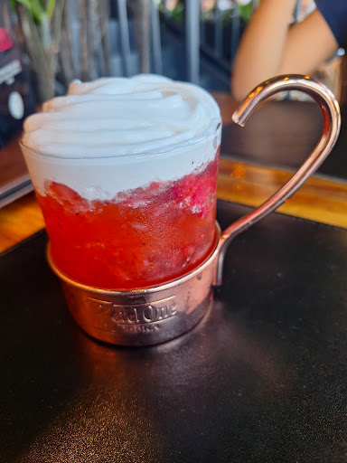 Pedimos bebidas (refri, suco de laranja e um coquetel morango mule(muito saborosa por sinal)) que geralmente são trazidas em seguida, porém demoraram um cadinho, a entrada que pensamos que seria mais rápida também demorou, estava muito saborosa, o prato principal chegou apos quase 1h e estava maravilhoso também.