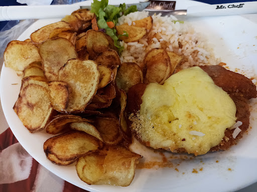 Hoje estive no Mr Cheff do Boulevard, pedi um combo de Frango a Passarinho com Polenta. Perguntei à atendente qual seria a quantidade indicada para três adultos. Me disse que a média tinha em torno de 1,2 kg. Sendo assim achei que seria suficiente. Pois quando peguei o prato fiquei surpreso, pois tinha apenas cinco pedaços pequenos de frango e um monte de polenta! Me senti enganado e fiquei realmente desapontado. Não voltarei novamente. Depois comprei uma porção de 10 pedaços de filé de frango no Popeye's, realmente mais do que suficiente para três pessoas e somente R$ 4,00 mais caro. Aí sim, me senti bem servido e por um preço justo!