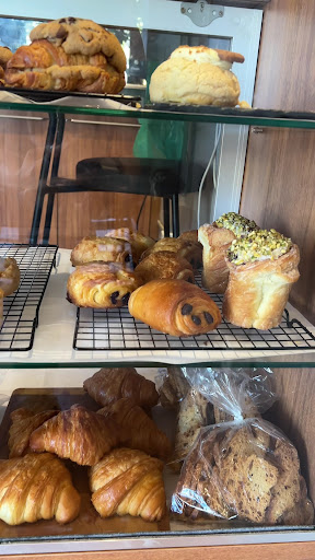 Pedimos chá gelado batido, café expresso duplo, “croissant queijo e presunto”, croissant puro. Levamos pra casa o doce de pistache e um pão fermentação natural.