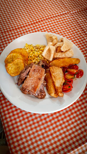 Read moreSó faltou a costela assada que já tinha acabado no sábado que lá estivemos... Era o prato mais falado por quem nos levou, mas às 13h30 já não tinha mais... Como possuem carne de cordeiro, decidimos experimentar, mas daí a surpresa negativa para nós, pois temperaram o cordeiro com esses temperos comprados na esquina e que tiraram todo o sabor da carne...Bastaria um alecrim, alho e sal que o cordeiro ficaria bom, mas colocar qualquer tempero é falta de conhecimento... Os docinhos estavam bons... A pururuca que minha prima acha delicioso é aquela comprado em sacos, artificial mas crocante, só que tem gente que jura que essa pururuca é feita ali... Deixar faltar costela na hora do almoço é falta de...